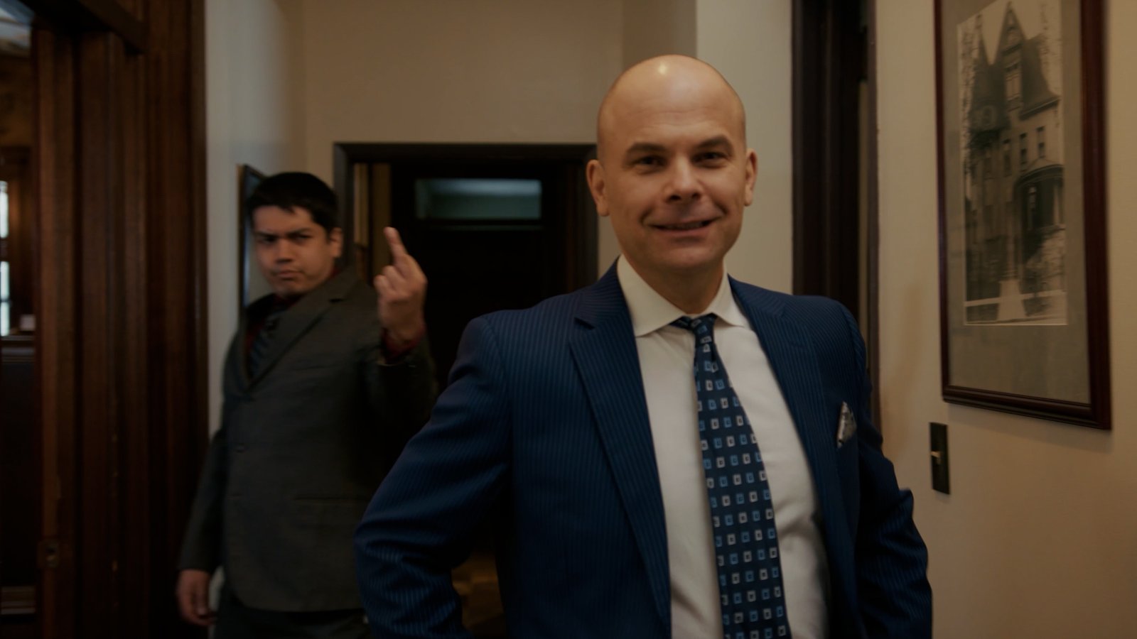One of the film’s stronger devices is Dean’s occasional voiceover narration. Toward the end, he poses a question that feels like the moral backbone of the story: “When did civil service become self-service?” That line lands. It captures not just his personal ethos, but the frustration many feel about institutions designed to protect the public yet often serving themselves instead.